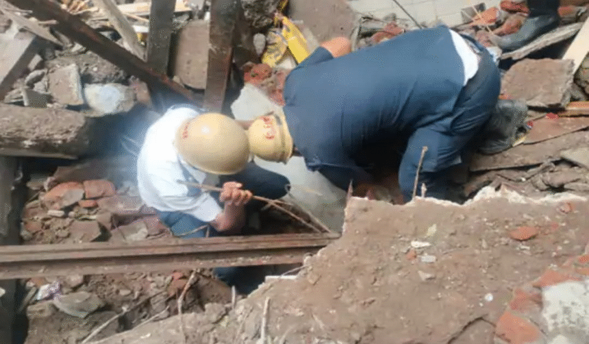 ઘટના બાદ તરત જ ફાયર વિભાગ અને પાલિકાની ટીમ ઘટનાસ્થળે પહોંચી ગઈ હતી. કાટમાળમાં દબાયેલા શ્રમિકોને બચાવવા માટે રેસ્ક્યુ ઓપરેશન શરૂ કરવામાં આવ્યું હતું. બચાવ કામગીરીના હૃદયદ્રાવક દ્રશ્યો સામે આવ્યા હતા. એક શ્રમિક અડધો કાટમાળની બહાર દેખાતો હતો. ફાયર બ્રિગેડના જવાનોએ ભારે જહેમત બાદ કાટમાળ હટાવીને બંને શ્રમિકોને બહાર કાઢ્યા હતા.એક શ્રમિકને સામાન્ય ઈજા થઈ હતી, જ્યારે અન્ય શ્રમિકને ગંભીર ઈજા થતાં ઉધના પોલીસ પોતાના પીસીઆર વાનમાં તેને તાત્કાલિક સારવાર માટે હોસ્પિટલ લઈ ગઈ હતી.