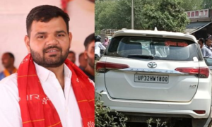 ઉત્તર પ્રદેશના ગોંડામાં ભાજપના નેતાના કાફલાની બેકાબૂ ફોર્ચ્યુનરે બાઇકને ટક્કર મારી દીધી. આ અકસ્માતમાં બાઇક સવાર બે યુવકોના મોત થઈ ગયા, જ્યારે અન્ય બે રાહદારીઓ ગંભીર રીતે ઘાયલ થયા છે. જે ફોર્ચ્યુનર કારથી અકસ્માત થયો તે કૈસરગંજ લોકસભા સીટના ભાજપના ઉમેદવાર કરણ ભૂષણ સિંહના કાફલામાં સામેલ હતી. કાર પર પોલીસ એસ્કોર્ટ લખેલું છે.