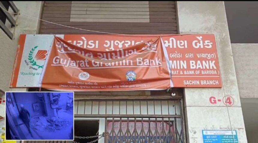 સુરતના સચિન વિસ્તારમાં આવેલી ગુજરાત ગ્રામીણ બેંકમાં લૂંટની ઘટના સામે આવતા ચકચાર મચી જવા પામી છે. બે કર્મચારીઓને રૂમમાં પૂરીને 3.76 લાખની લૂંટ કરી આરોપી ફરાર થઇ ગયા હતા. બેંકમાં લૂંટ થઇ હોવાની માહિતી મળતા પોલીસના ઉચ્ચ અધિકારીઓ ઘટના સ્થળે પહોચ્યા હતા, પોલીસ દ્વારા હાલ આ સમગ્ર મામલે અલગ અલગ ૫ ટીમો બનાવીને તપાસનો ધમધમાટ શરુ કરવામાં આવ્યો છે.