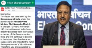 તમને જણાવી દઈએ કે, ‘વિકસિત ભારત સંકલ્પ‘ નામના વેરિફાઈડ વોટ્સએપ એકાઉન્ટથી મોટી સંખ્યામાં લોકોને પીએ મોદીનો પત્ર મોકલવામાં આવ્યો છે. જેમાં લખ્યું છે કે, “આ પત્ર વડાપ્રધાન નરેન્દ્ર મોદીના નેતૃત્વવાળી ભારત સરકારના વિકાસ ભારત સંપર્ક કેન્દ્ર દ્વારા મોકલવામાં આવ્યો છે. છેલ્લા ૧૦ વર્ષમાં દેશના ૮૦ કરોડથી વધુ નાગરિકોને ભારત સરકારની યોજનાઓનો સીધો લાભ મળ્યો છે અને ભવિષ્યમાં પણ મળતો રહેશે.