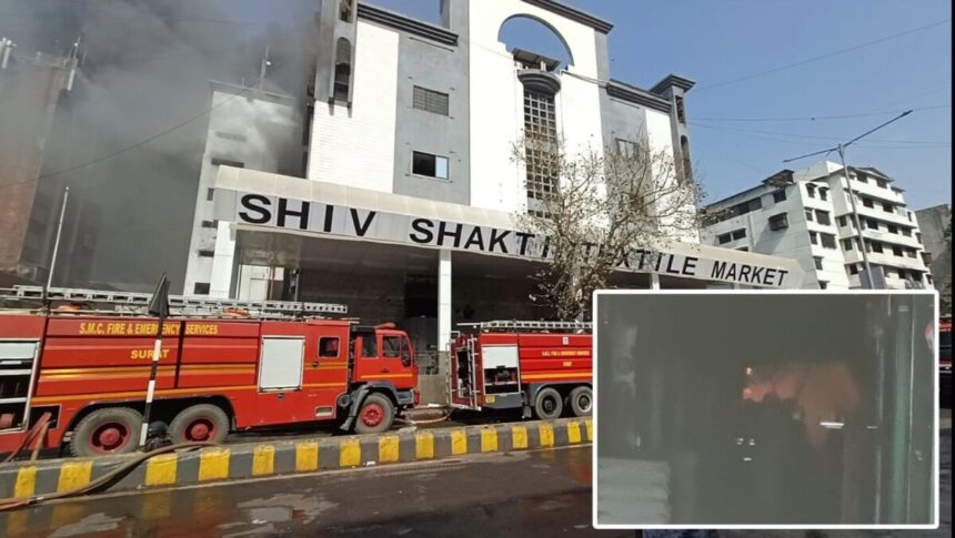 સુરત શહેરના રિંગ રોડ વિસ્તારમાં આવેલા શિવશક્તિ ટેક્સટાઇલ માર્કેટના બેઝમેન્ટમાં આગ લાગવાની ઘટના સર્જાઇ હતી. જેના લીધે ભારે અફરાતફરીનો માહોલ સર્જાયો હતો. ચાલુ દિવસ અને પીક અવર હોવાથી માર્કેટમાં લોકોની ભારે ભીડ હતી. આગની લાગવાના સમાચાર મળતાં લોકોએ પોતાનો જીવ બચાવવા માટે દોડધામ કરી હતી. આગના કારણે ભારે ધુમાડાને ગોટેગોટા જોવા મળ્યા હતા. આ ઘટનામાં ગૂંગળામળના લીધે એક વ્યક્તિનું મોત નીપજ્યું છે. જોકે એ.સી. કોમ્પ્રેસરમાં બ્લાસ્ટ થતાં આગ લાગી હોવાનું પ્રાથમિક તબક્કે જાણવા મળ્યું છે.