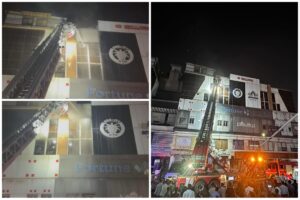 આ ઘટના સુરતના સિટીલાઈટ વિસ્તારમાં આવેલા ફોર્ચ્યુન મોલમાં આગની ઘટના બની છે. હાલમાં ઘટના સ્થળે 10 જેટલી ફાયર ફાઈટરની ગાડીઓ પહોંચી ગઈ છે અને આગ પર કાબૂ મેળવવાનો પ્રયાસ કરી રહી છે. હાલમાં આ બિલ્ડીંગના ત્રીજા માળે કેટલાક લોકો ફસાયા હોવાની પણ આશંકા વ્યક્ત કરાઈ રહી છે. તે ઉપરાંત આ ઘટનામાં બે લોકોના મોત થયાની જાણકારી સામે આવી રહી છે. અને આ બંને મૃતદેહ મહિલાઓના સામે આવ્યા છે.