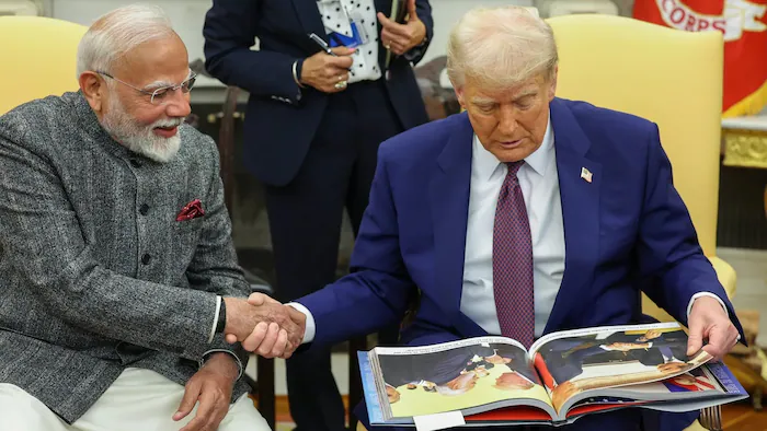 અમેરિકાના રાષ્ટ્રપતિ ડોનાલ્ડ ટ્રમ્પે વડાપ્રધાન નરેન્દ્ર મોદીને ખાસ ભેટ આપી છે. તેમણે પીએમ મોદીને કોફી ટેબલ બુક ‘અવર જર્ની ટુગેધર’ ભેટ આપી હતી. તેમાં રાષ્ટ્રપતિ ટ્રમ્પના હસ્તાક્ષર છે અને સંદેશ લખ્યો છે, ‘મિસ્ટર પ્રાઇમ મિનિસ્ટર, તમે મહાન છો.’ આ 320 પાનાનું પુસ્તક છે જેમાં ‘હાઉડી મોદી’ અને ‘નમસ્તે ટ્રમ્પ’ કાર્યક્રમોની હાઇલાઇટ્સ સામેલ છે. આ દરમિયાન બંને નેતાઓ ખુલ્લેઆમ એકબીજાને ટેકો આપતા જોવા મળ્યા હતા. વર્ષ 2019માં હ્યુસ્ટનના ફૂટબોલ સ્ટેડિયમમાં ‘હાઉડી મોદી’ રેલીનું આયોજન કરવામાં આવ્યું હતું, જેમાં 50 હજારથી વધુ ભારતીય-અમેરિકનોએ ભાગ લીધો હતો. આ દરમિયાન પીએમ મોદી અને રાષ્ટ્રપતિ ટ્રમ્પ બંનેએ ભાષણ આપ્યું હતું.