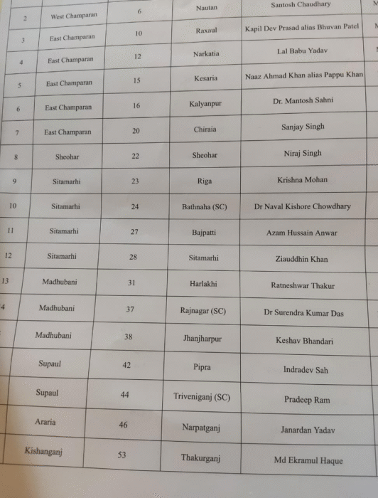 - સમસ્તીપુરની મોરવા વિધાનસભા બેઠક પરથી સ્વર્ગસ્થ મુખ્યમંત્રી કર્પૂરી ઠાકુરના પૌત્રી જાગૃતિ ઠાકુર.