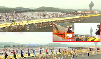 ભારતની અસ્મિતાના શિલ્પી અને લોહપુરુષ સરદાર વલ્લભભાઈ પટેલની ૧૫૦મી જન્મજયંતિ નિમિત્તે સમગ્ર રાષ્ટ્રની નજર ગુજરાતના એકતાનગર પર મંડાયેલી છે. વિશ્વની સૌથી ઊંચી પ્રતિમા સ્ટેચ્યૂ ઓફ યુનિટીના સાનિધ્યમાં આજે 31મી ઓક્ટોબરના રોજ રાષ્ટ્રીય એકતા દિવસનો સમારોહ ઐતિહાસિક રૂપ ધારણ કર્યું છે. વડાપ્રધાન નરેન્દ્ર મોદીની ઉપસ્થિતિમાં આ ભવ્ય સમારોહ એક ભારત, શ્રેષ્ઠ ભારતની ભાવનાને ખરા અર્થમાં સાર્થક કર્યો છે. મહત્ત્વનું છે કે, પ્રથમવાર એકતાનગર ખાતે દિલ્હીના ગણતંત્ર દિવસની તર્જ પર ટેબ્લો અને સશષા દળોની મુવિંગ પરેડ યોજવામાં આવી છે.