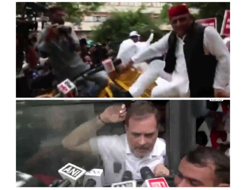 અખિલેશે બેરિકેડ્સ કૂદીને આગળ વધવાનો પ્રયાસ કર્યો. જ્યારે સાંસદોને આગળ જવા દેવામાં આવ્યા નહીં, ત્યારે તેઓ જમીન પર બેસી ગયા. પ્રિયંકા, ડિમ્પલ સહિત ઘણા સાંસદો ‘વોટ ચોર ગદ્દી છોડ’ના નારા લગાવ્યા હતા. પોલીસે રાહુલ, પ્રિયંકા સહીત વિપક્ષના અનેક નેતાઓની અટકાયત કરી હતી.