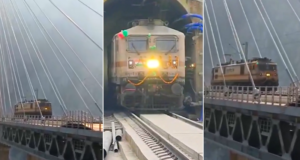 T-33 ટનલ પૂર્ણ થયા પછી, રેલ્વે મંત્રી અશ્વિની વૈષ્ણવે ટ્વીટ કર્યું, “ટનલ નંબર 1 અને અંજી ખડ્ડ કેબલ બ્રિજ પરથી પસાર થતું પહેલું ઇલેક્ટ્રિક એન્જિન.”