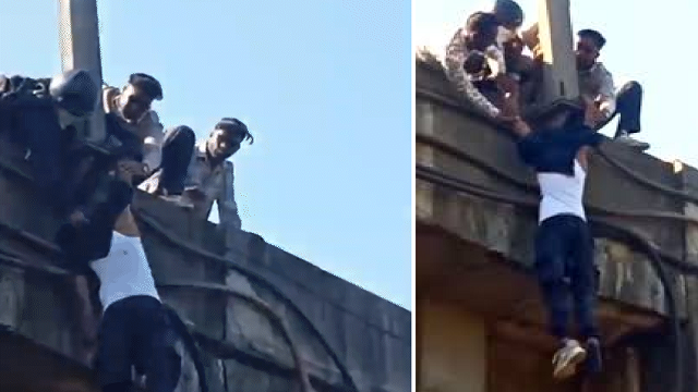 પસાર થતા લોકોએ યુવકને સલામત સ્થળે ખેંચ્યો